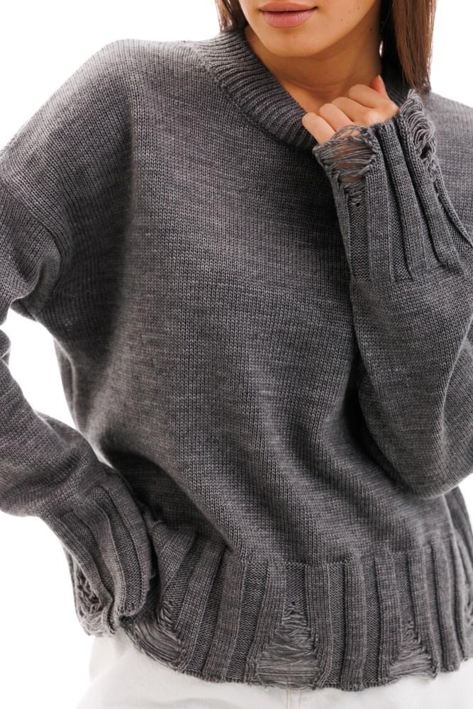 Додати трендових акцентів вашим повсякденним образам у холодну пору допоможе цей молодіжний джемпер з машинного в'язання від Arjen. Модель повністю виготовлена з лицьової гладіні, а хвилясті краї низу та довгих рукавів виготовлені з машинного в'язання в широкий рубчик і прикрашені ажурними клинами. Пройми в кофті опущені, кругла горловина доповнена коротким в'язаним коміром із тонкою гумкою, вшитою на краях. Така модна в'язана кофта підживиться і з джинсами або штанами, і зі спідницями-плісе завдовжки міді — замовляйте та створюйте свій оригінальний look!